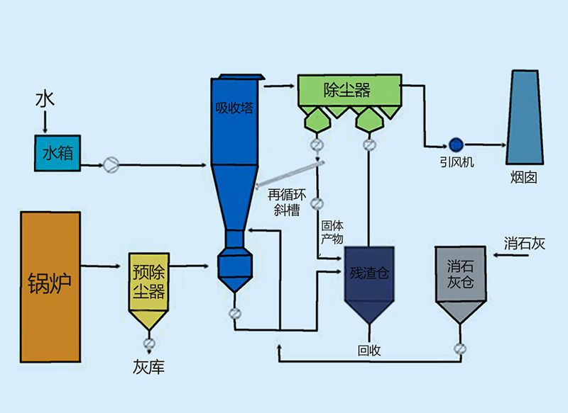 半干法煙氣脫硫工藝,借鑒循環(huán)流化床的工作原理,使吸收劑在反應(yīng)器內(nèi)以流態(tài)化方式多次循環(huán),延長(zhǎng)吸收劑與煙氣的接觸時(shí)間,從而大大提高吸收劑的利用效率,并提高脫硫效率,其特點(diǎn)是流程簡(jiǎn)單、結(jié)構(gòu)緊湊、投資低,適用于中低硫煤。