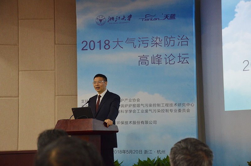 本次論壇由浙江大學、浙江天藍環保技術股份有限公司、浙江省工業鍋爐爐窯煙氣污染控制工程技術研究中心共同主辦。中國工程院院士、環境與輕紡工程學部主任、清華大學環境學院教授、環境科學與工程研究院院長郝吉明教授,中國工程院院士、中國科學院生態環境研究中心副主任、中國科學院城市環境研究所副所長賀泓研究員,中國環境保護產業協會副會長、秘書長易斌研究員,國電環境保護研究院副院長王小明研究員等來自高校、科研機構及業內知名企業的100余位代表出席了本次論壇會議。