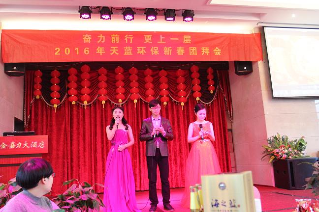 2016年2月4日,公司在金嘉力大酒店舉行了2016年新春團拜會。會上,公司董事長發表了題為《奮力前行 更上一層》的重要講話,表彰了2015年度杰出貢獻獎、天藍之星、天藍新星和特別獎,員工們表演了精彩的文藝節目。